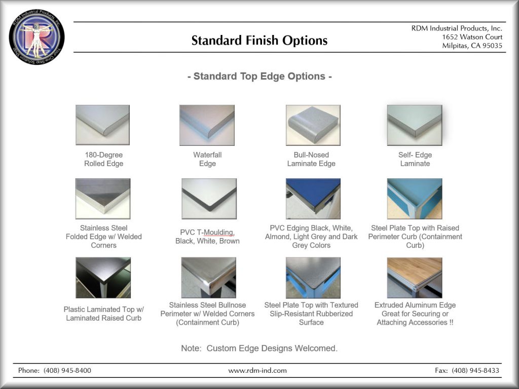 - Many Top Options to Choose From, Including Plastic Laminate, Chemical Resistant, ESD / Static-Control, Solid Surface, Solid Wood (Butcher Block), Stainless Steel, and More…