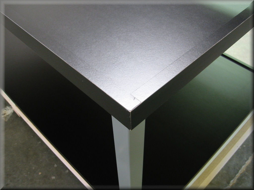 (Plastic Laminate) Specially-coated plastic laminate – Available in black suede finish (low-gloss) or black crystal finish (medium-gloss). 1 1/4″ thick. Also see Specifications…